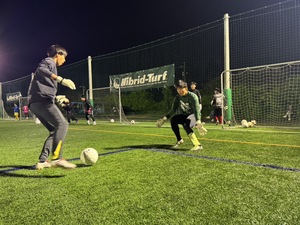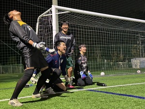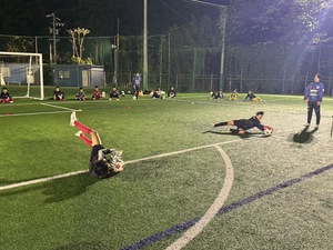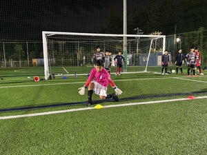 シュートを止めた後満足するのではなく、すぐに立ち上がって構え直すことが大切です!